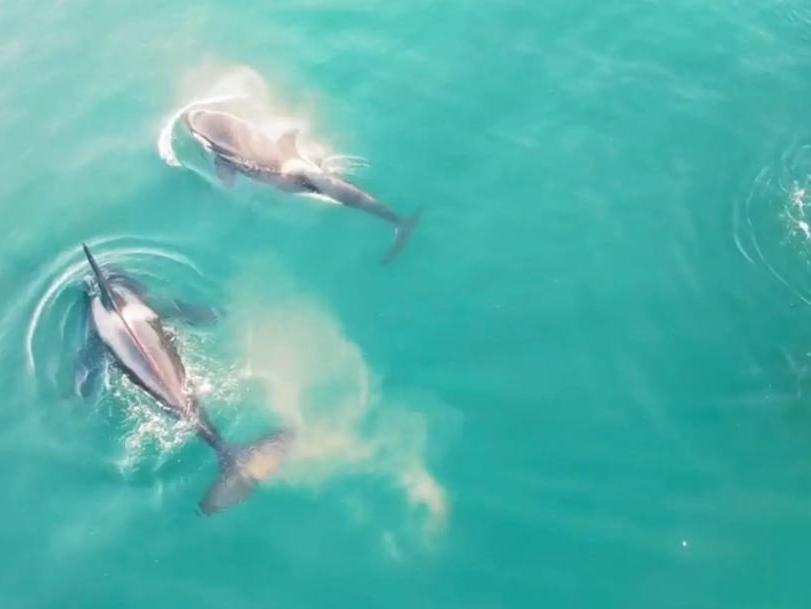 Dronla çekilen kayıtların ardından bölge helikopterle havadan tekrar görüntülenirken, katil balinaların avlarına gruplar halinde saldırması kameraya yansıdı.