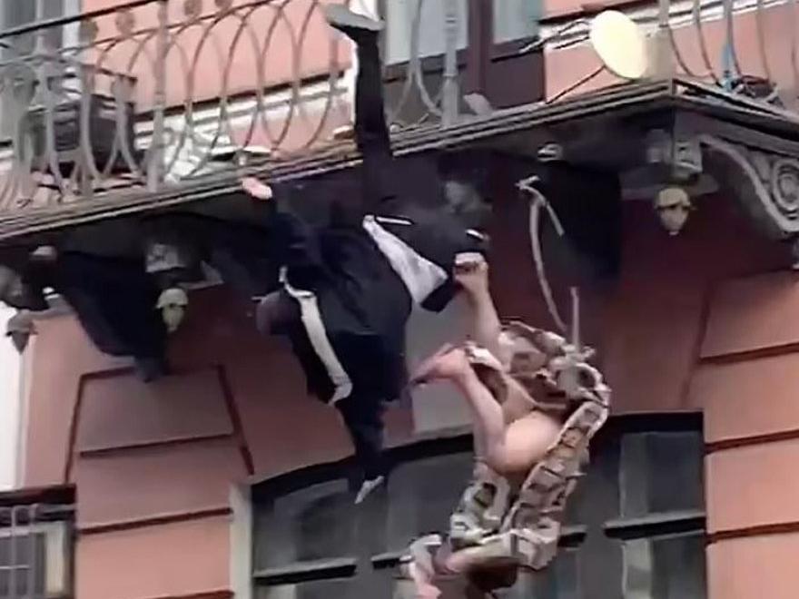 Olay önceki gün Rusya'nın St. Petersburg kentinde meydana geldi. Evlerinin balkonunda kavga eden bir çift daha sonra boğuşmaya başladı. Bu sırada tarihi binanın balkonundaki korkuluk her ikisi de 35 yaşında olan Olga Volkova ve Yevgeny Karlagin'in kavgasının şiddetine dayanamayarak kırıldı.