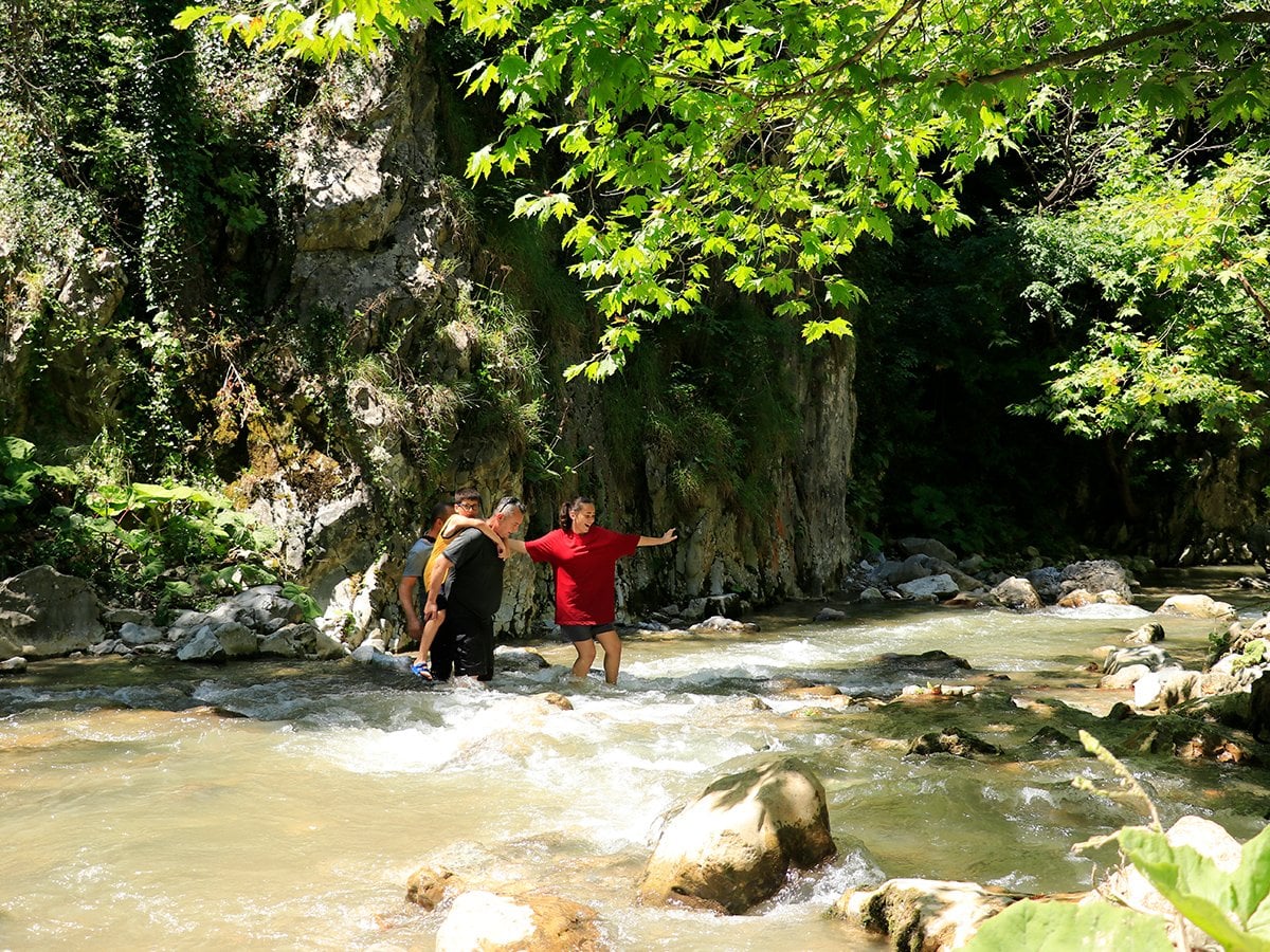 Kanyon boyunca suları adeta buz gibi akan derenin içinde zorlu bir yürüyüş gerçekleştiren ziyaretçiler, büyüleyici manzaralarla karşılaşıyor.