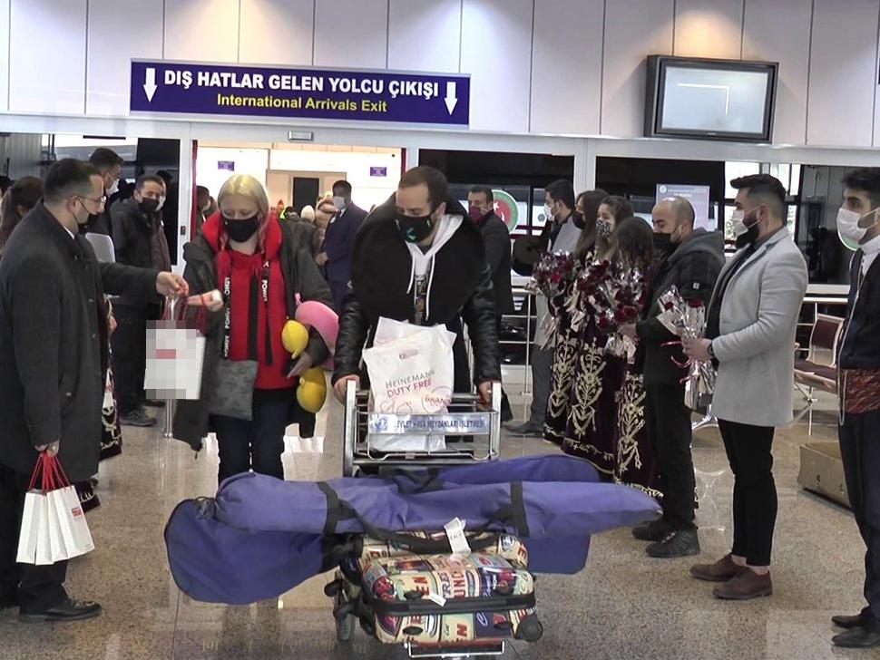 Sabah saatlerinde Erzurum Havalimanı'nda davul zurna ve çiçeklerle karşılanan 200 Ukraynalı tatilcinin pistte kaymalarına izin verilmemesi üzerine jandarma ekipleri ile yabancı turistler arasında sert tartışmalar yaşandı.