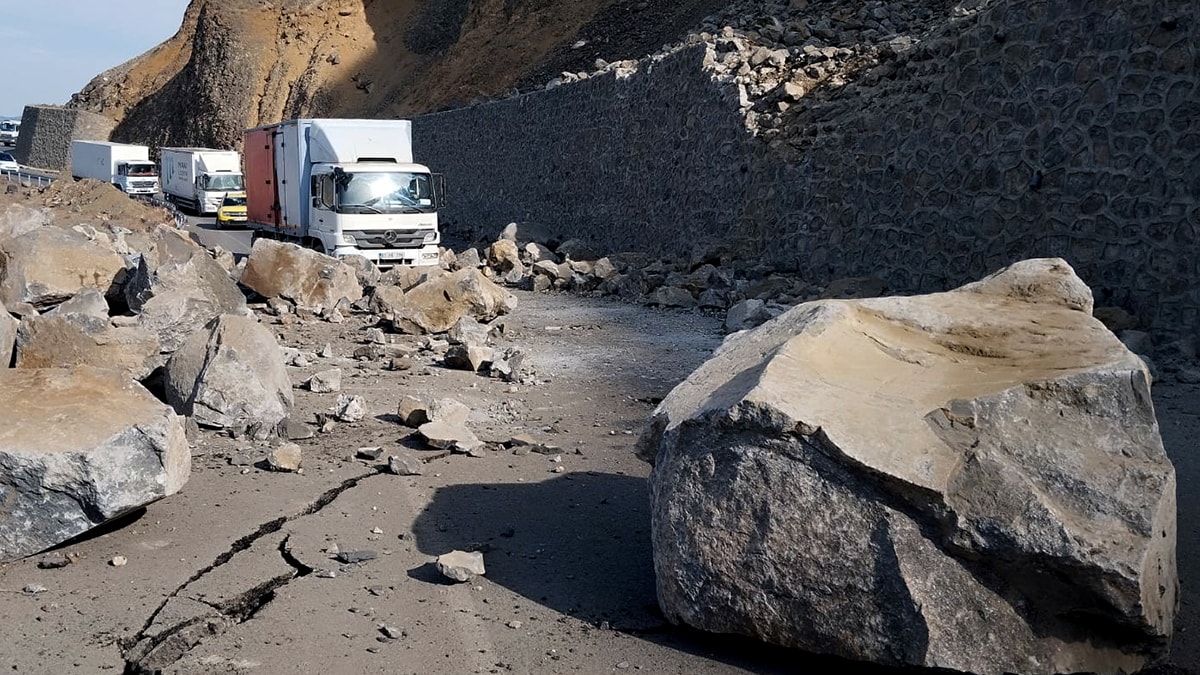Sürücüler, kaya parçalarının düşerek tehlike oluşturduğu bölgede tedbir alınmasını istedi.
