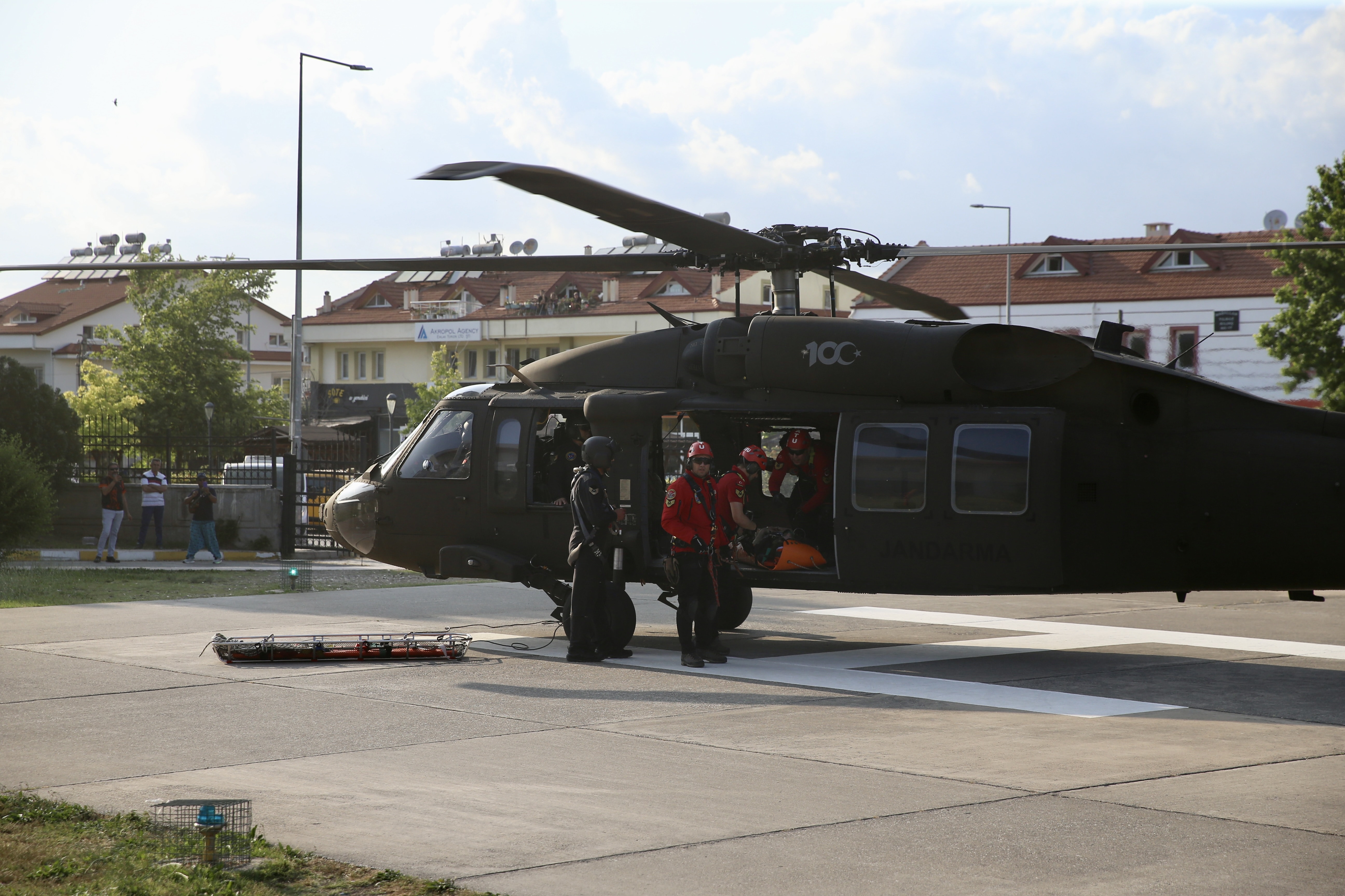 Bölgeye ulaşan ekiplerin arazinin sarp ve kayalık olması nedeniyle taşıma yapamaması üzerine, Jandarma Aydın Filo Komutanlığından helikopter talep edildi.