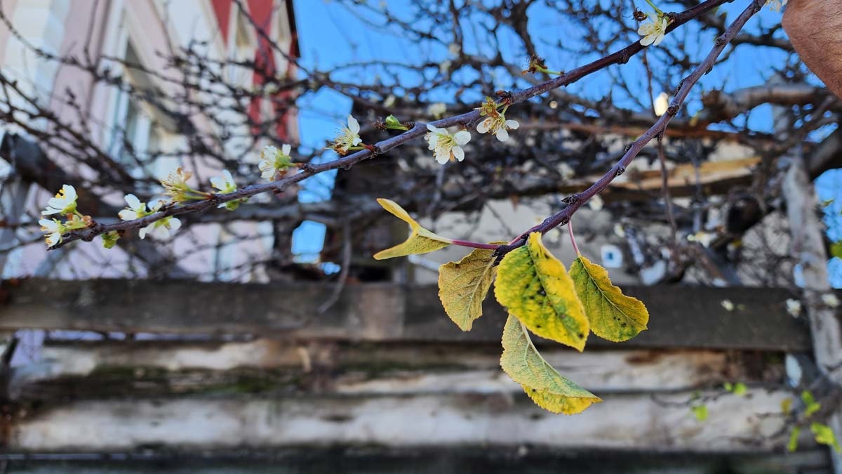 Cumhuriyet Mahallesi'nde çiçek açan kayısı ağacının bulunduğu bahçenin sahibi 65 yaşındaki Hamza Can, bugüne kadar ağaçların bu kadar erken çiçek açtığını görmediğini söyledi.