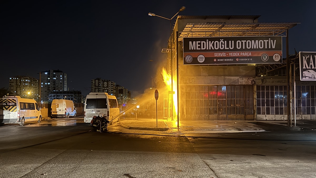 İtfaiye ekiplerinin iş yerine sıçramaması için müdahale ettiği yangın, ekiplerin doğalgaz vanasını kapatmasının ardından söndürüldü.