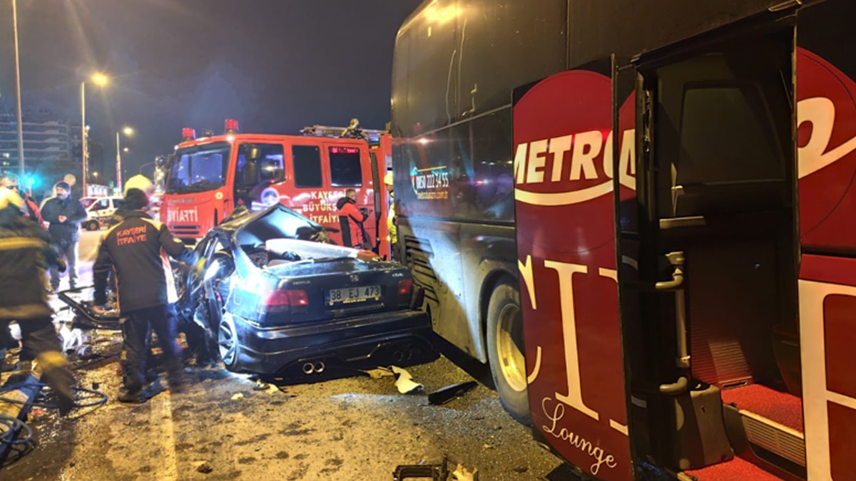 Kayseri'nin Kocasinan ilçesinde meydana gelen feci kazada 2 yolcu otobüsü ile 1 otomobilin karıştığı trafik kazasında 2 kişi hayatını kaybetti, 1 kişi yaralandı.