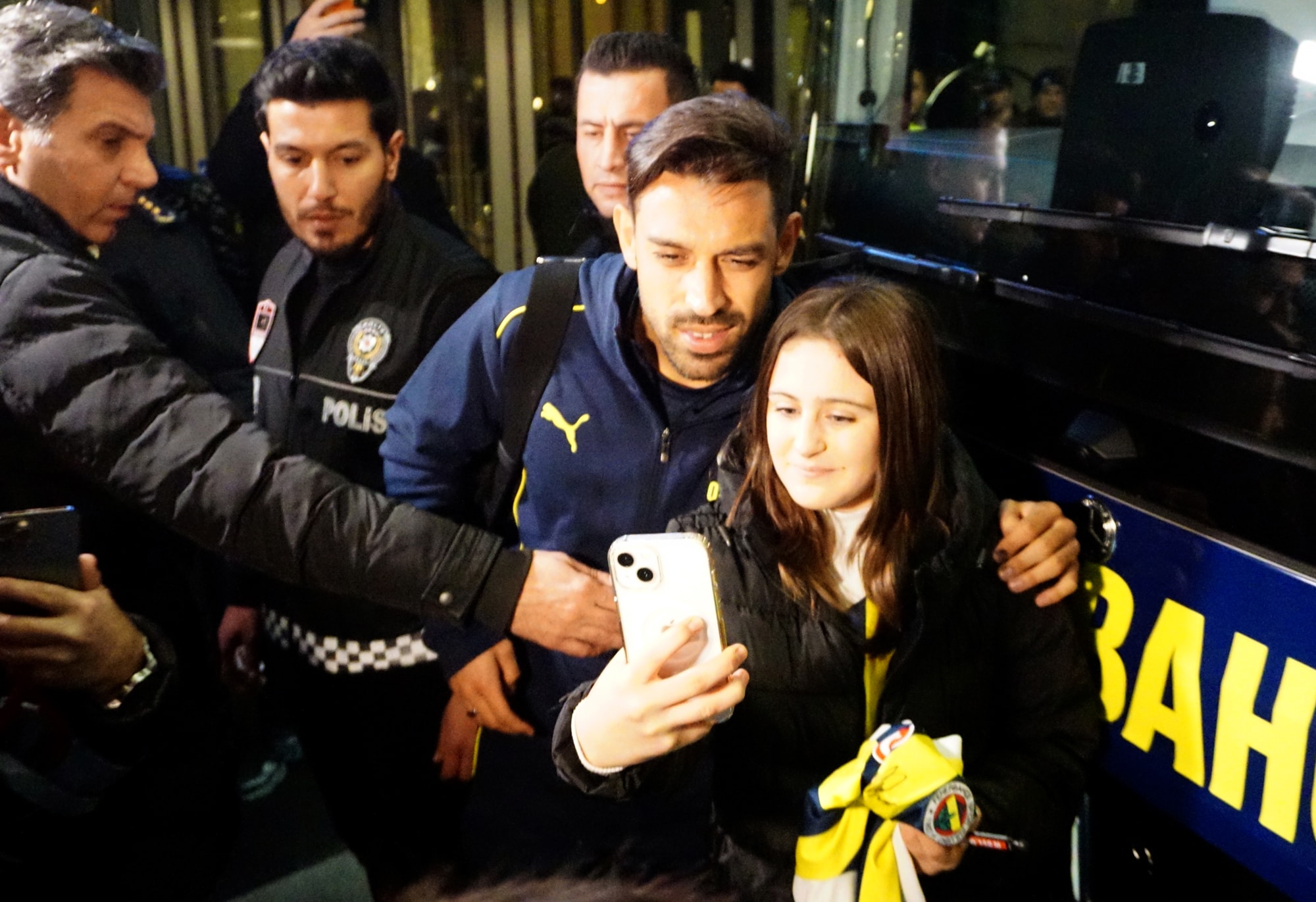 Yarın Kayserispor'a konuk olacak Fenerbahçe saat 19:20'de havayolu ile Kayseri'ye ulaştı. Fenerbahçeli çok sayıda taraftar takımlarını karşılamak için havalimanı girişine ve takımın konaklayacağı otelin önüne geldi. Sarı lacivertlileri taşıyan otobüs otele geldiğinde çok sayıda taraftar futbolculara ve teknik direktör Jose Mourinho’ya sevgi gösterisinde bulundu. Mourinho taraftarlara imza dağıttıktan sonra otele giriş yaptı.