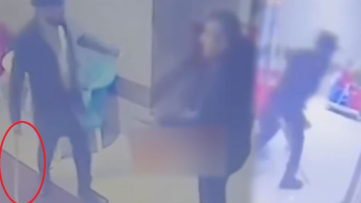 Binanın güvenlik kamerasına yansıyan görüntülerde ise A.R.’nin kapıya vurduğu ardından da bir kişiye kılıçla saldırdığı görüldü.