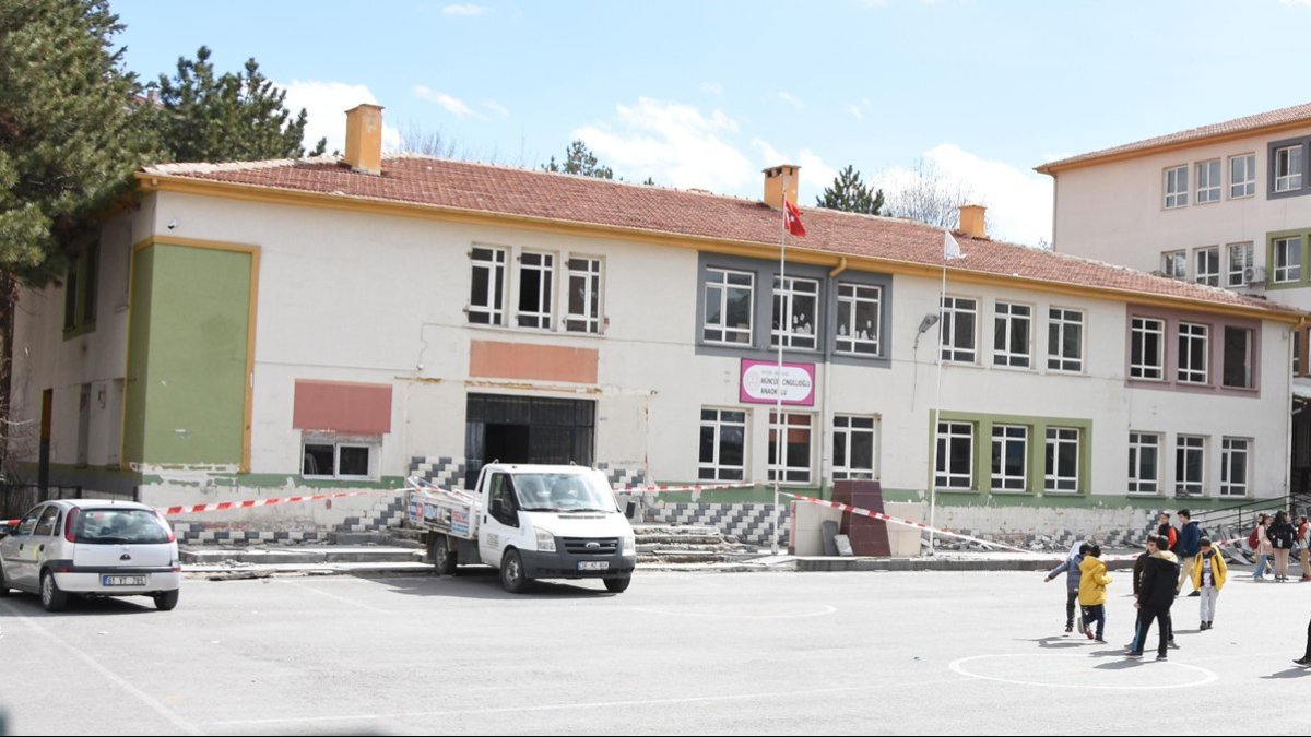 Okulda denetleme yapan Çevre, Şehircilik ve İklim Değişikliği İl Müdürlüğü ekipleri, ağır hasarlı bina için yıkım kararı verdi. Boşaltılmaya başlanan okul, çalışma tamamlanınca yıkılacak. (DHA)