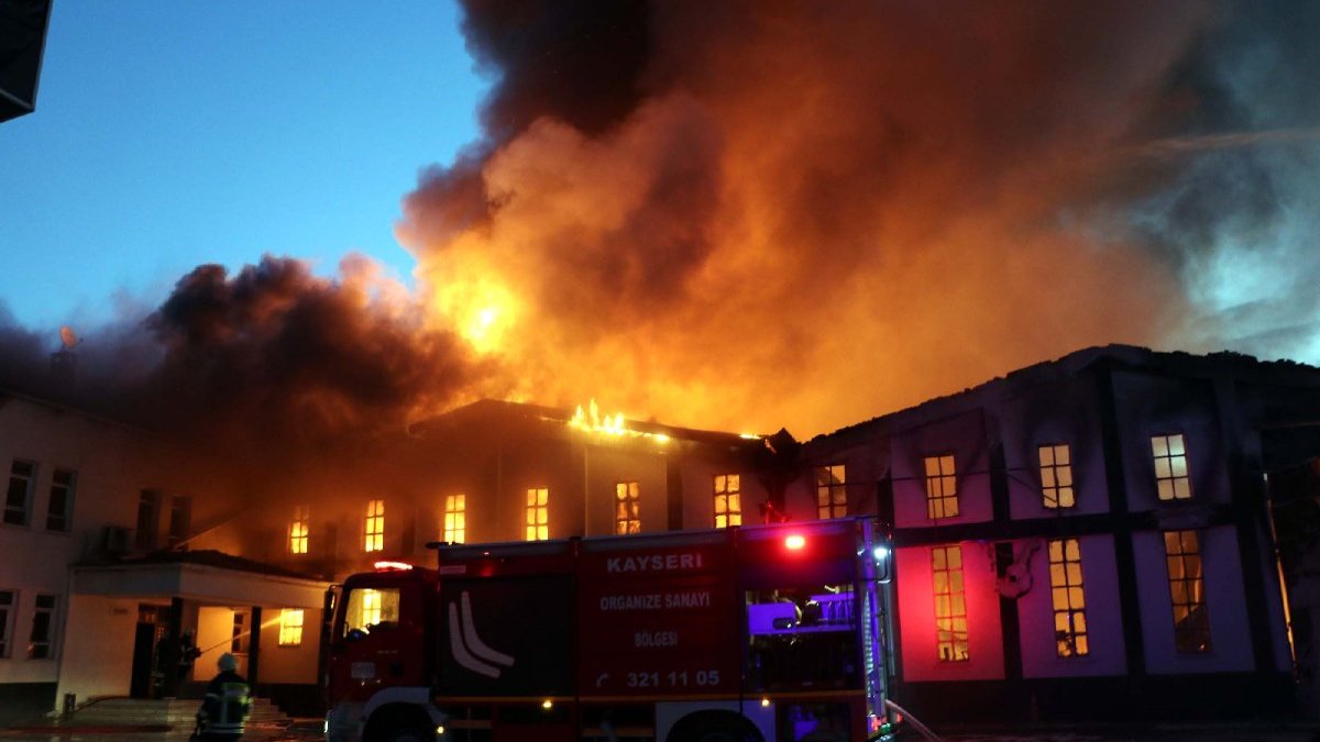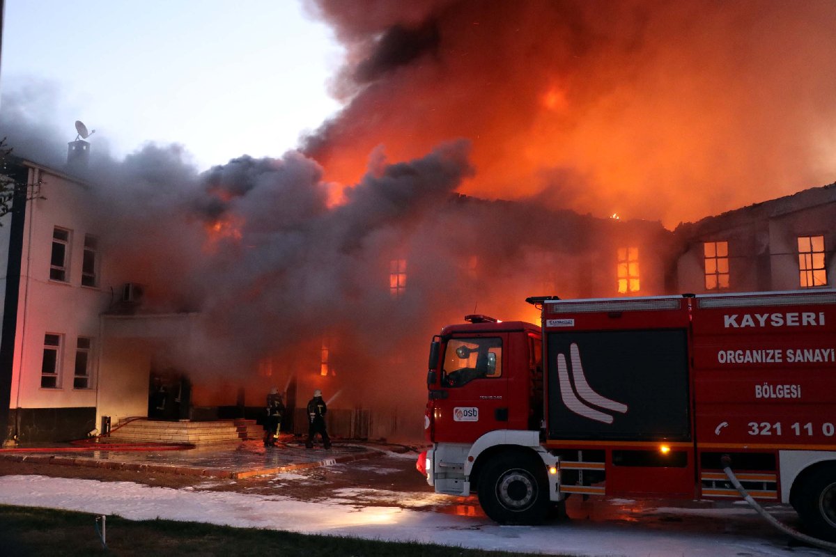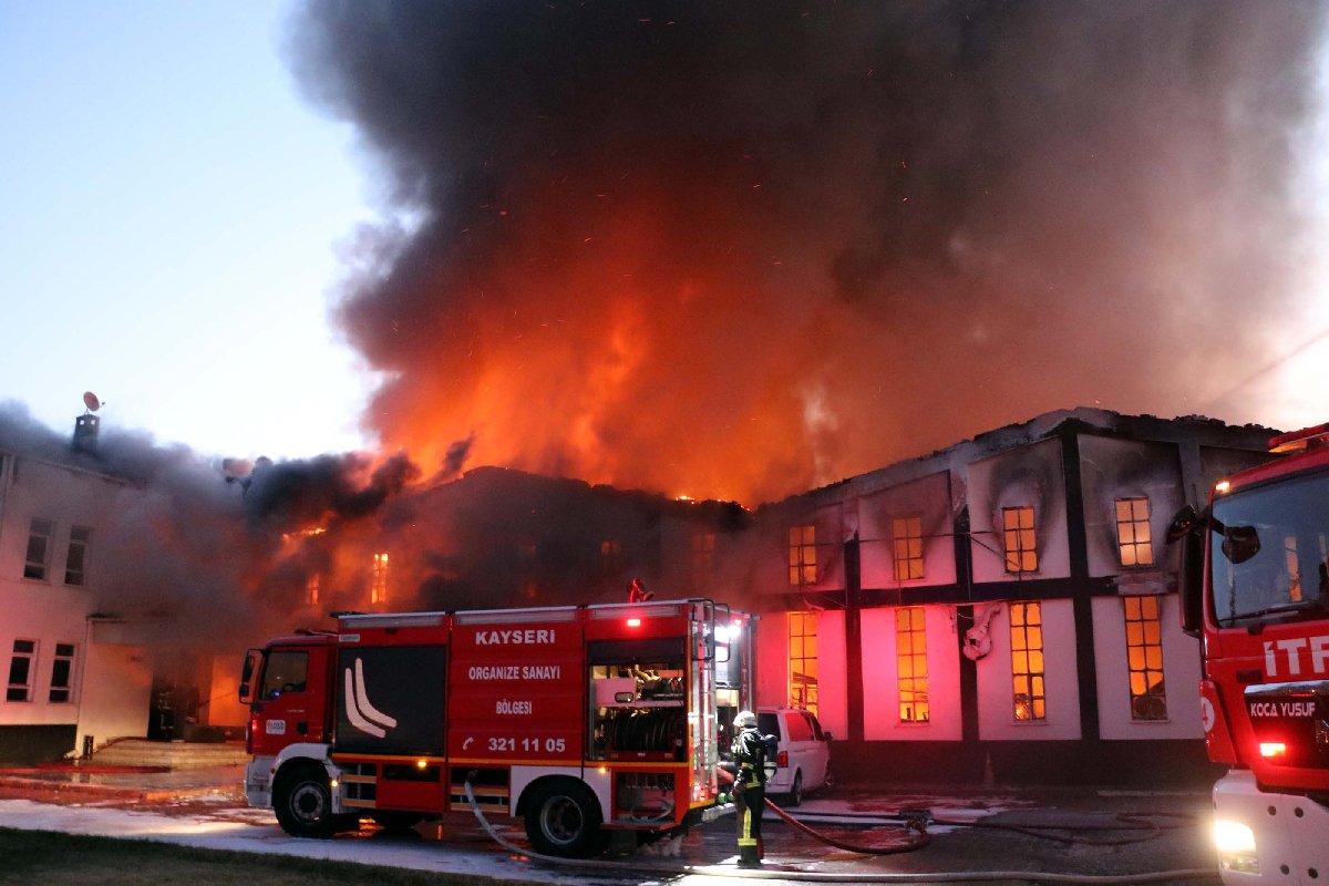 Yangın, saat 05.30 sıralarında Kayseri Organize Sanayi Bölgesi 10'uncu Cadde'de bulunan bir mobilya fabrikasında çıktı.