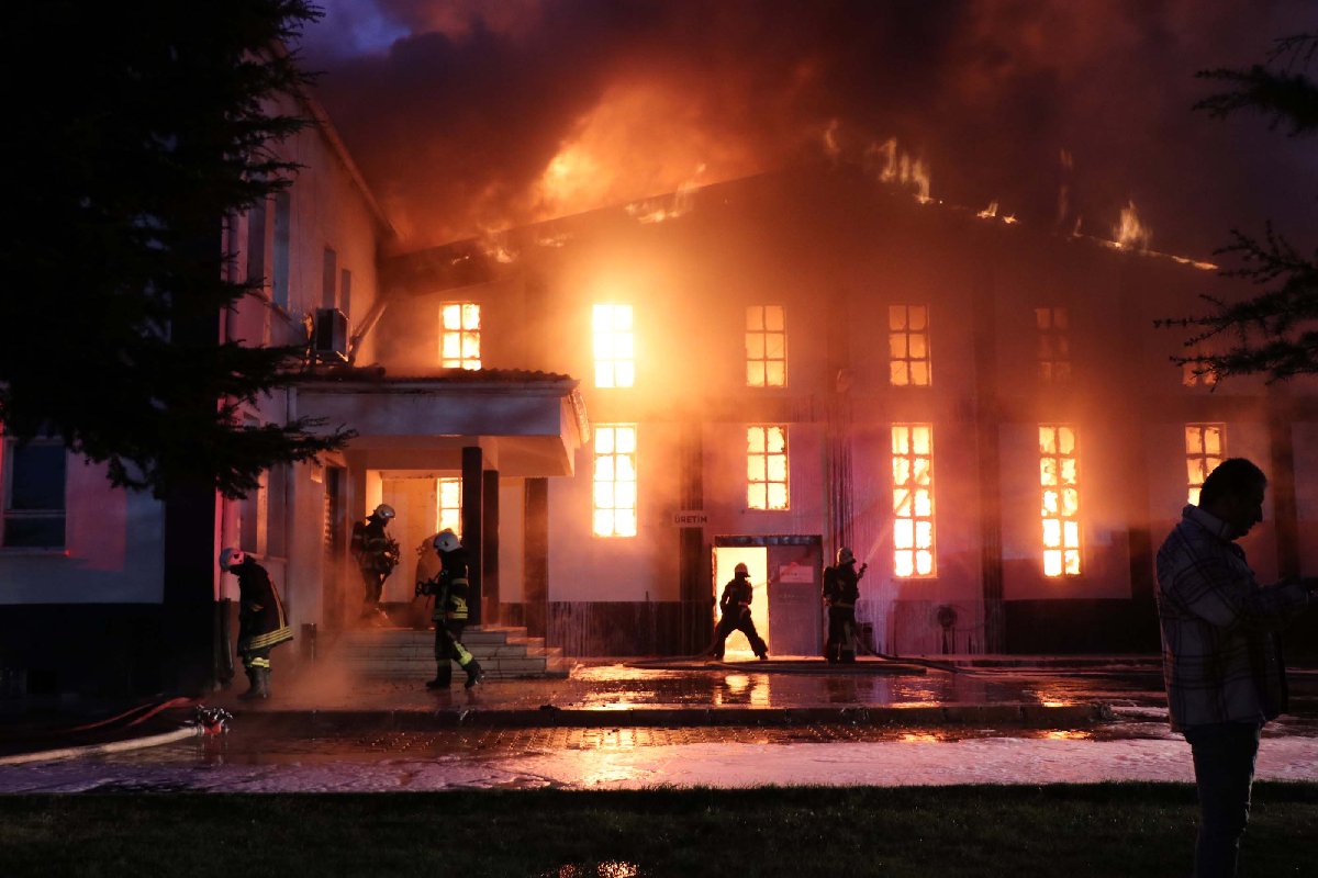 Soğutma çalışmalarının devam ettiği fabrika ve içeride bulunan malzemeler kullanılamaz hale geldi. (AA-DHA)