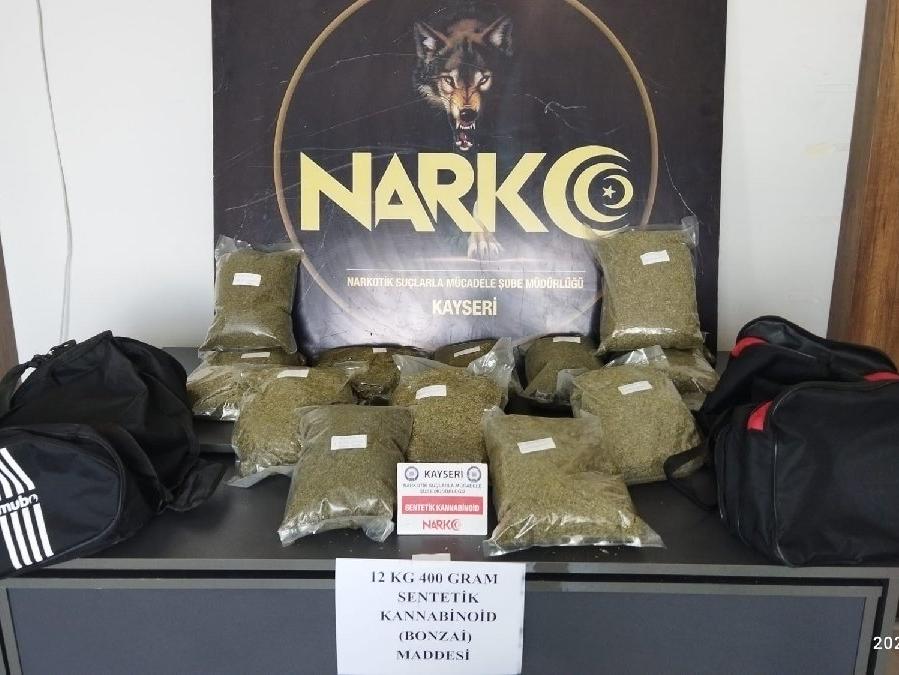 Kayseri-Niğde kara yolunda uygulama noktasında önlem alan polis, bir yolcu otobüsünü durdurdu. Otobüste yapılan aramada, 12 kilo 400 gram bonzai ele geçirildi.