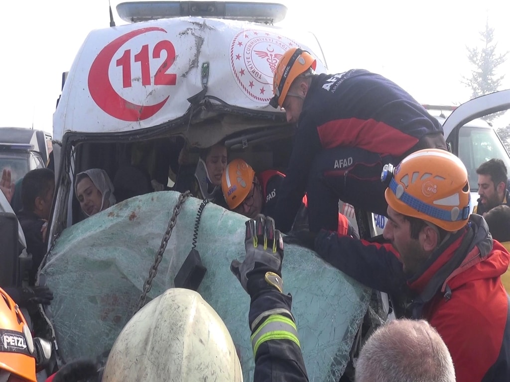 TIR'daki Hasan Acar (56) ise "Biz kırmızı ışıkta bekliyorduk. Yolda çok acayip sis vardı. Ambulans başka bir kazaya gidiyormuş. Sürücüsü bizi görmedi. Büyük ihtimalle trafik ışıklarını da fark etmedi. Bize arkadan çarptı. Hemen 112'yi arayarak yardım istedim" dedi.