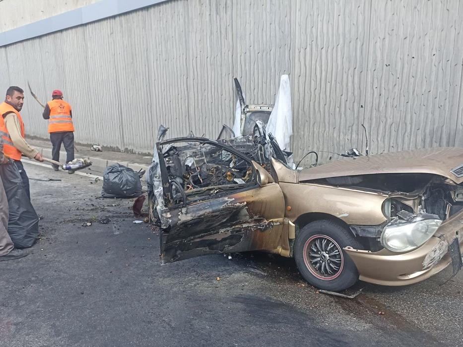 Çarpmanın etkisiyle tüplü olduğu öğrenilen ve alev alan araçtan çıkamayan sürücü ile eşi Arzu Kirpikçi hayatını kaybetti.