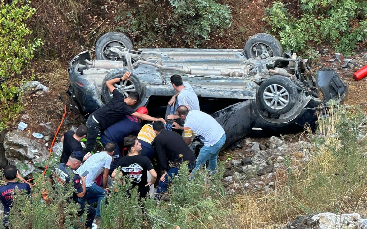 Ters dönen araçtaki sürücü Hüseyin (42), eşi Dilek, çocukları Yiğit Kadir (15), Mert Mehmet (12) ve Kumru Yerdelen (5) yaralandı.