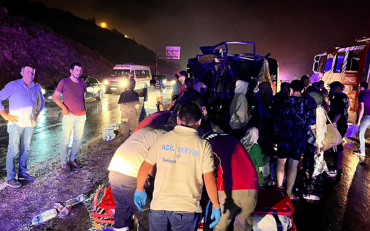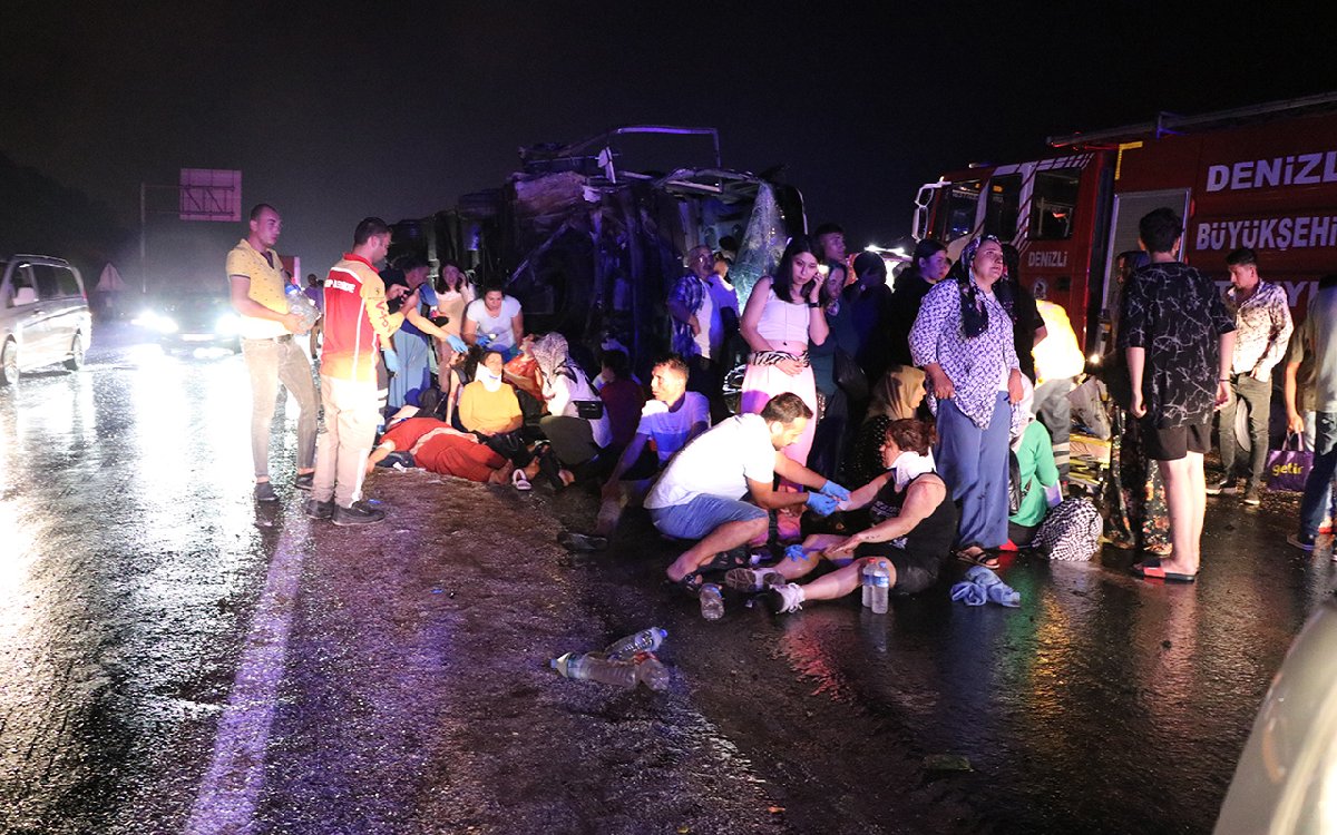 Bugün sabah saatlerinde Denizli'nin Honaz ilçesinde kum yüklü kamyonun karşı şeride geçerek otobüse çarpması sonucu 6 kişi yaşamını yitirmiş, 42 kişi de yaralanmıştı.