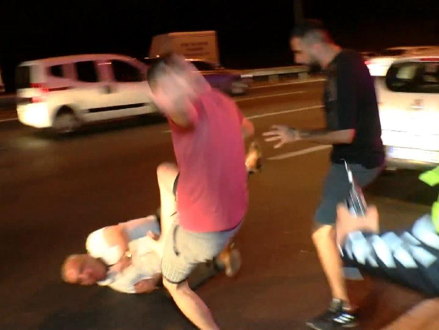 Ayrıca, polisin alkol testi sırasında kazazedelerin yakınları, alkollü olduğu tespit edilen sürücü Sönmez Karaca'ya tekme tokat saldırdı. Olayda, sürücü yüzünden yaralanırken, polis kazazede yakınlarını güçlükle sakinleştirdi.