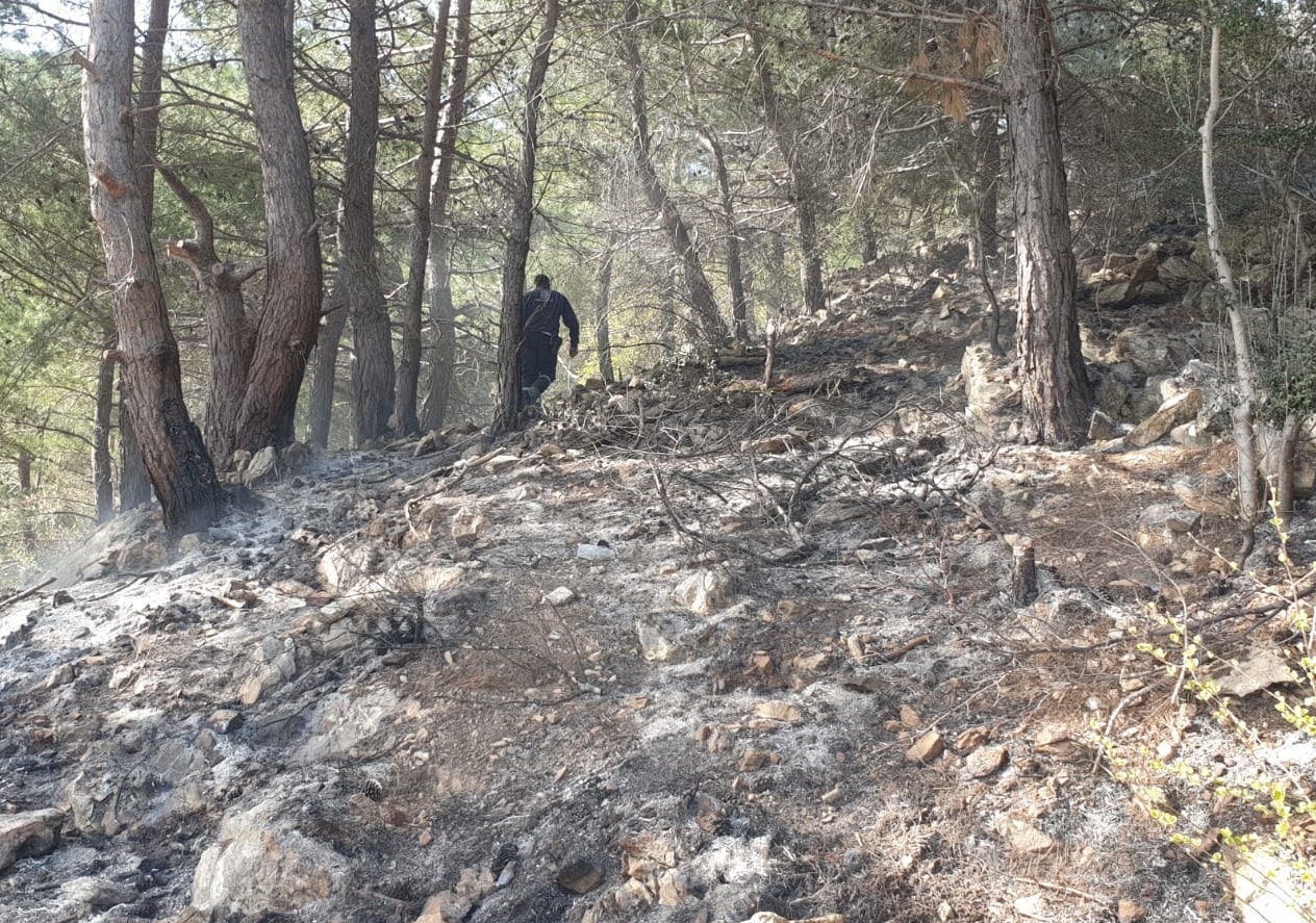 Yangında 300 metrekarelik alandaki ağaçlar zarar gördü.