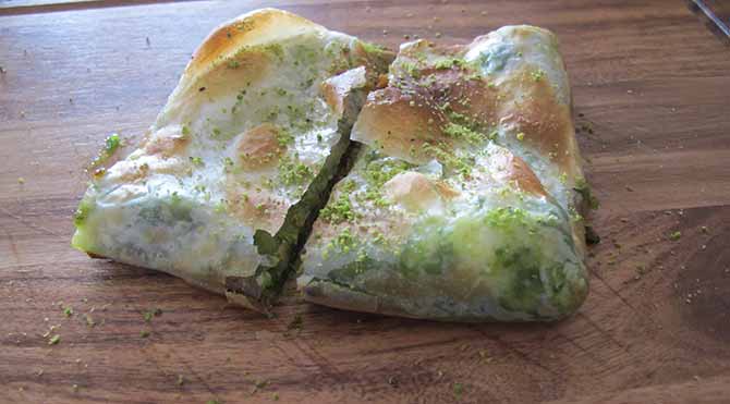 Bu kadar güzel yemeği tatlı ile taçlandırmasak olmaz tabii ki. Gene bu konuda Ayşegül Hanım’ın önerisini dinleyip irmik helvası ve altı nar gibi kızarmış o muhteşem katmeri birer lokma tadacağız diye başlıyoruz bakıyoruz ki katmerin yerinde yeller esiyor.