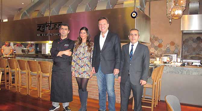 Arkadaşımla Steinberger Oteli’nin altında buluştuk, en kaliteli et lokantaları zincirlerinden biri olan Suda Kebap, burada şube açmış. İsminin yanına Antakya’yı, Adana’yı çağrıştırsın diye Zahter kelimesini de eklemiş. Lokanta içeri girince önce dekorasyonu ile büyülüyor.
