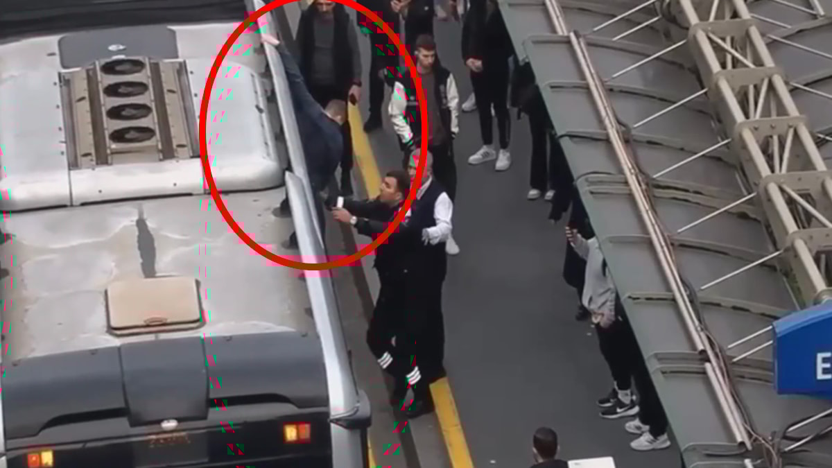 Fenomenin metrobüsün üstüne çıktığı ve güvenlik görevlisi tarafından indirildiği anlar duraktaki kameralara yansıdı.