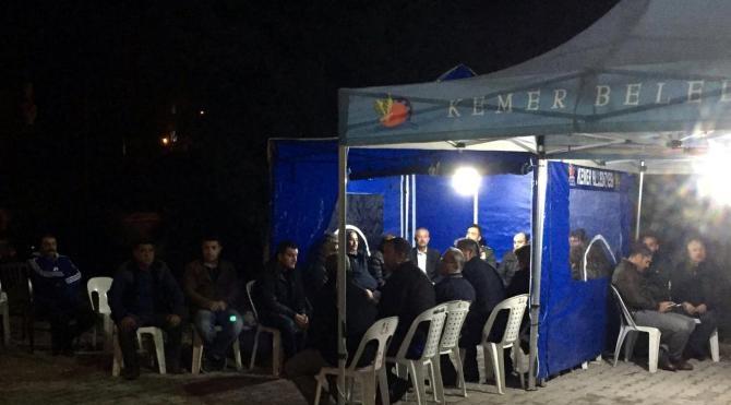 Şehit Akın`ın evi ve bulunduğu caddeye çok sayıda Türk Bayrağı asılırken, evin önüne Kemer Belediyesi tarafından taziye çadırı kuruldu.