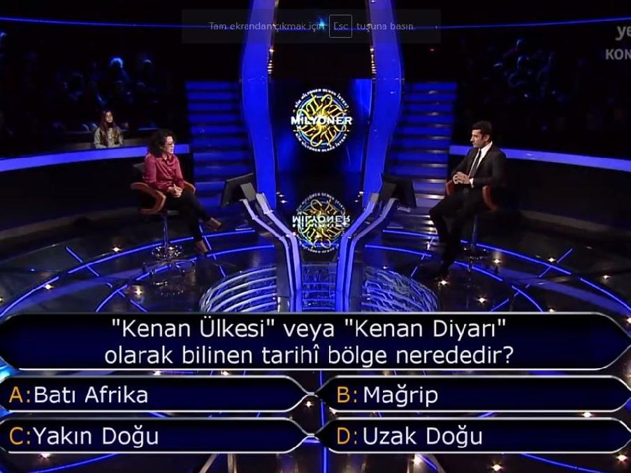 Kim Milyoner Olmak İster yarışmasında yer alan bazı soruların cevabı Google'da araştırılıyor: Kenan Ülkesi veya Kenan Diyarı olarak bilinen tarihi bölge nerededir?