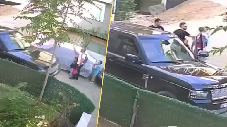 Bunun üzerine geri manevra yapan sürücü, cipi durdurup bu kişiyle tartışmaya başladı. Tartışmanın devamında cipten inen sürücü, çocuklarının yanında babaya tokat attı.
