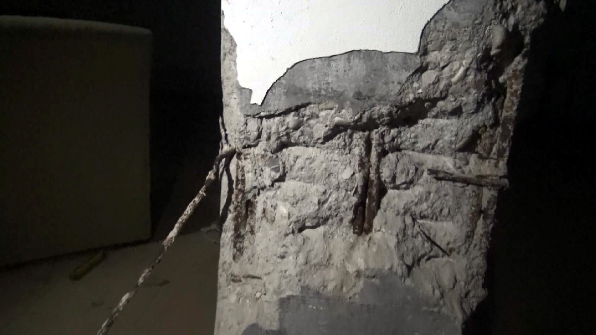 Öte yandan binanın kolonları ve kirişlerinde çatlaklar görüldü. (DHA)