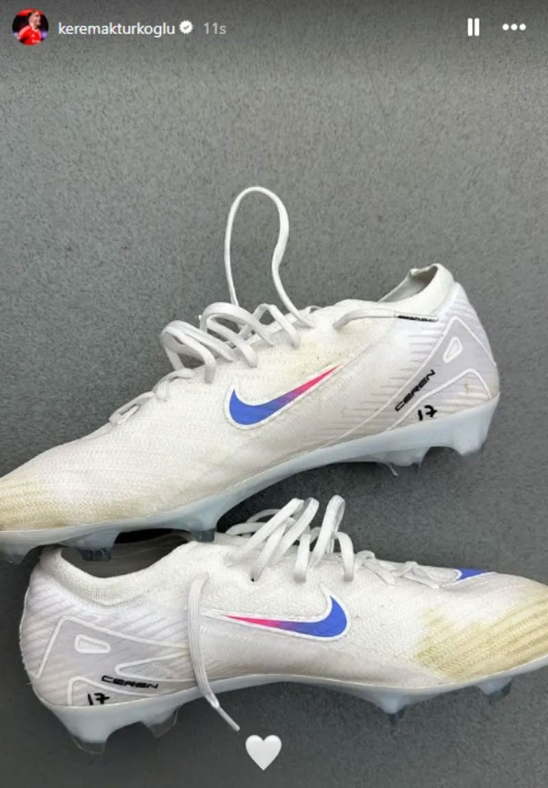Geçen aralık ayında çocuk gelişim uzmanı Ceren Azak ile Kocaeli'de sözlenen Aktürkoğlu, müstakbel eşinin ismi ile Benfica'daki forma numarası 17'yi özel olarak kramponlarına yazdırdı. 26 yaşındaki yıldız, bu anlamlı detayı Instagram'da paylaşıp gönderisine beyaz kalp emojisi ekledi.