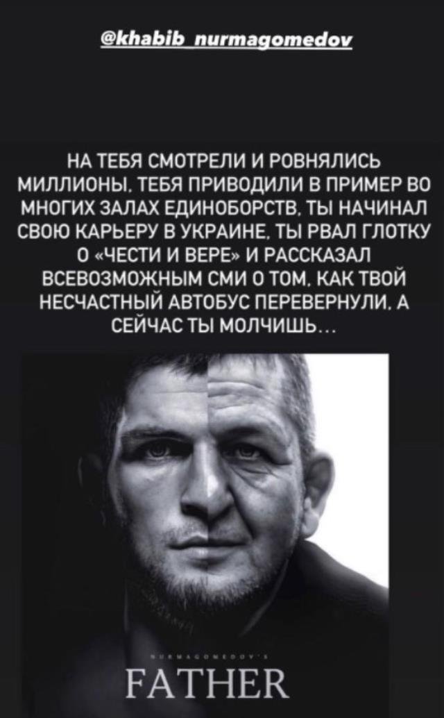 Mesajda dikkat çeken detay, Potiera'nın Dağıstanlı sporcunun kariyerine Ukrayna'da başladığını belirtmesiydi. Khabib Nurmagomedov, Conor McGregor ile yaptığı dövüşle dünyaca üne kavuşmuştu. Kariyerindeki 27. dövüşüne çıkan Nurmagomedov, bu düellonun ardından adından sıkça söz ettiren bir isim haline geldi.
