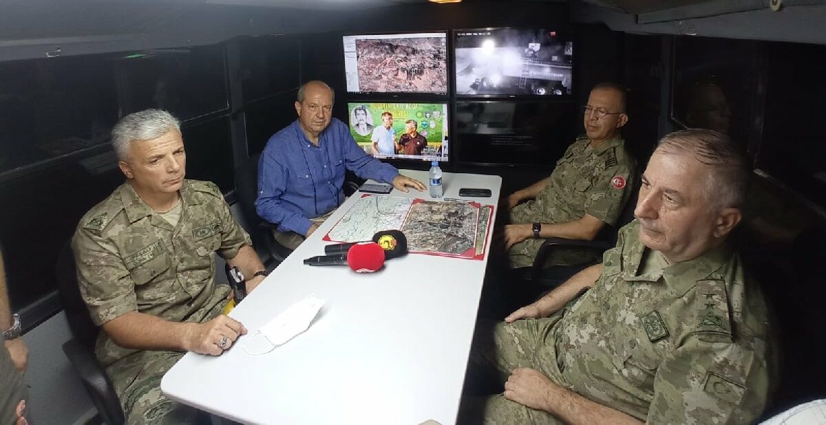 Öte yandan, Cumhurbaşkanı Ersin Tatar, inceleme yapmak ve bilgi almak için yangın bölgesine gitti. Pınarbaşı Havaalanı'ndan havalanan askeri helikopterle bölgede keşif uçuşu yapıldı. Cumhurbaşkanı Tatar'a, Tarım ve Doğal Kaynaklar Bakanı Dursun Oğuz, Kıbrıs Türk Barış Kuvvetleri Komutanı Tümgeneral Sezai Öztürk ve Güvenlik Kuvvetleri Komutanı Tümgeneral Zorlu Topaloğlu eşlik etti.