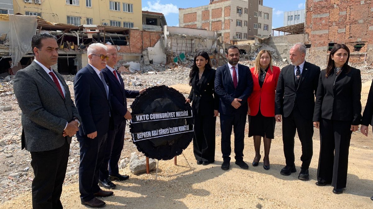 UBP Gazimağusa Milletvekili Oğuzhan Hasiopoğlu Başkanlığındaki heyet 6 Şubat’ta meydana gelen depremde Gazimağusa TMK ekibinin hayatını kaybettiği Adıyaman'daki İsias Otel enkazının bulunduğu bölgeye siyah çelenk bıraktı ve burada basına açıklama yaptı.