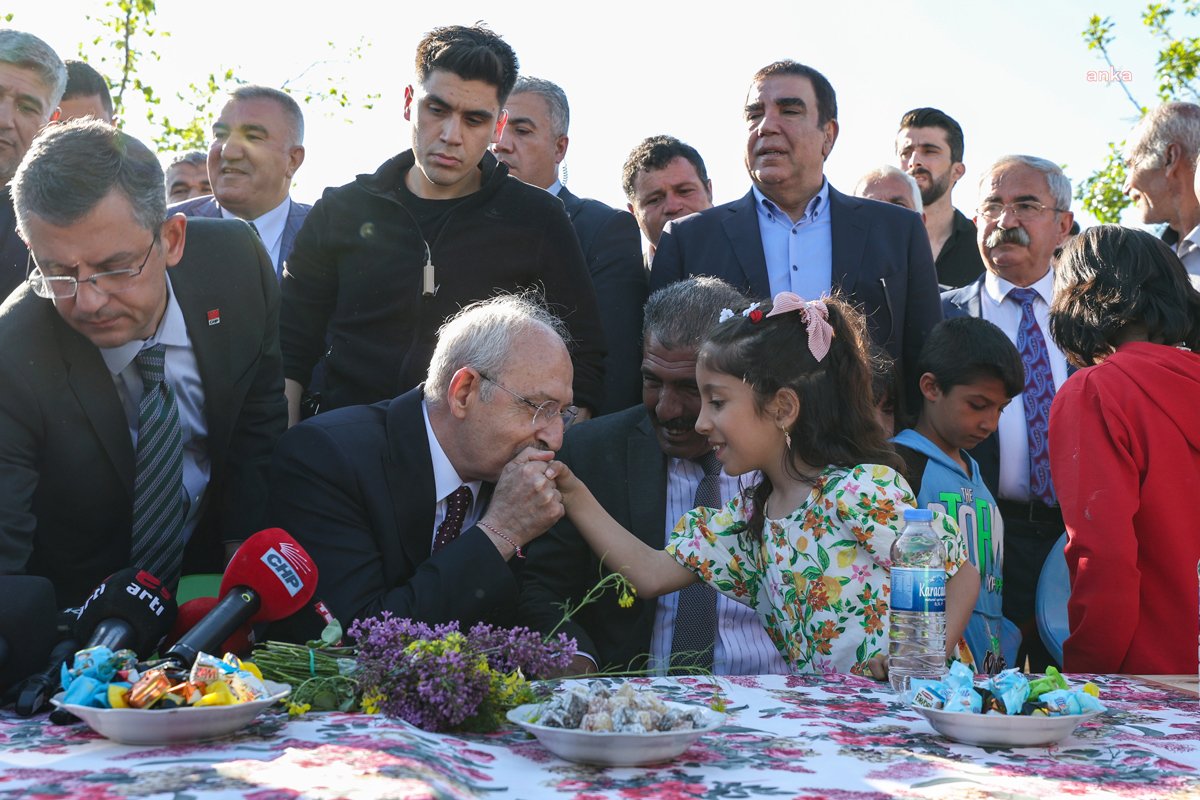 Kılıçdaroğlu, Samsat’ta yurttaşlarla bayramlaştı. Bir kız çocuğu Kılıçdaroğlu’nun elini öpmek isterken önce Kılıçdaroğlu çocuğun elini öptü.