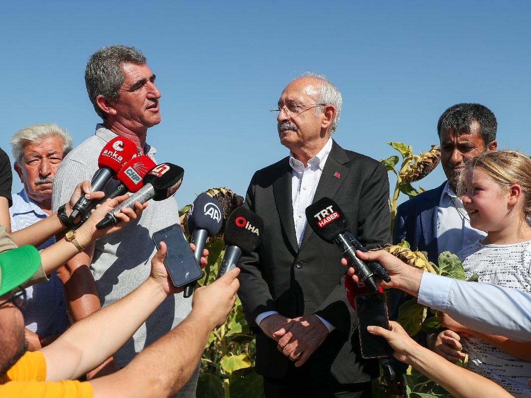 CHP lideri Kılıçdaroğlu, ayçiçeği tarlasında çiftçilerin sorunlarını dinledi.