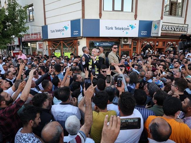 Bir partilinin hediye ettiği Ağrıspor atkısını boynuna asarak halka seslenen Kılıçdaroğlu, "Ağrı’da İşsizlik var, yoksulluk var, geçinememe durumu var. Bütün bunları biliyorum. Size bir tek sözüm var. Oy verir iktidara taşırsanız, Ağrı'yı da göreceksiniz, Kars'ı da göreceksiniz, Iğdır'ı da göreceksiniz. Bu ülkeye, bu insanlara bir sözüm var. Biz barışacağız, biz kucaklaşacağız, biz helalleşeceğiz, biz kul hakkı yemeyeceğiz, herkesi kucaklayacağız" dedi.