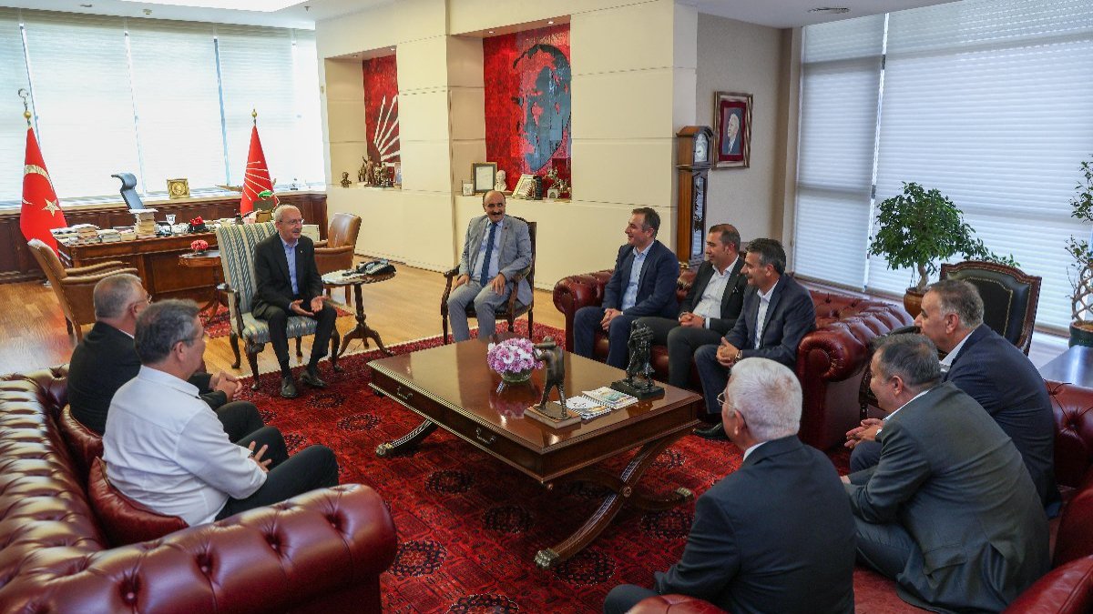 Görüşmede, Simitçiler Esnaf Odası Başkanı Savaş Delibaş, Kılıçdaroğlu'na simit ikram etti. CHP'den, görüşmeye ilişkin fotoğraflar paylaşıldı (DHA)