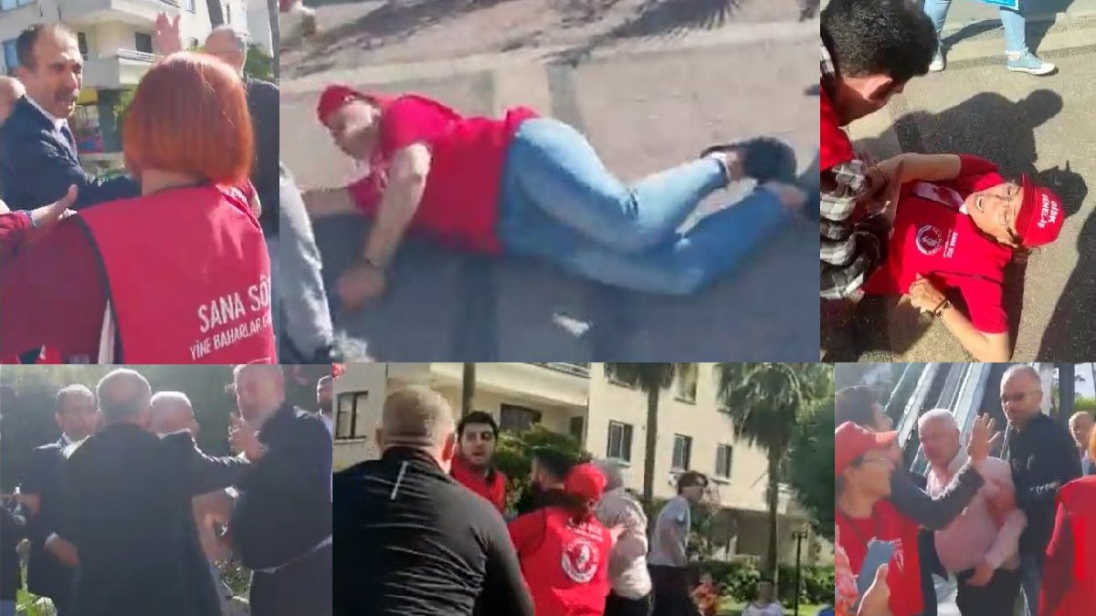 Üzerlerinde “Sana söz baharlar gelecek” yazılı kırmızı yelekler bulunan çoğunluğu kadınlardan oluşan Kılıçdaroğlu Gönüllüleri ile seçim koordinasyon merkezi önünde bulunan MHP’li gençler arasında bir anda başlayan sözlü sataşma saldırıya dönüştü.