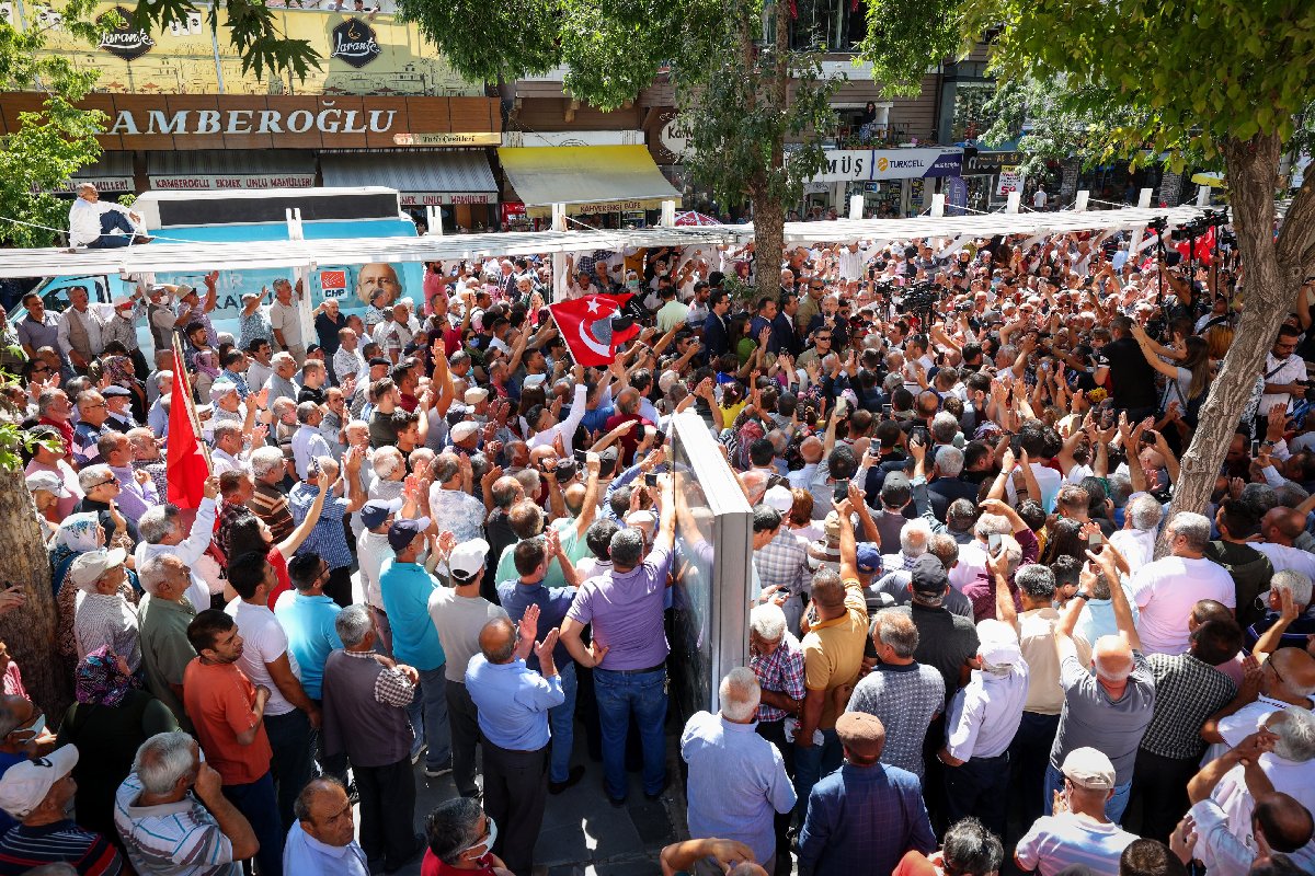Yoğun kalabalıktan dolayı esnaf ziyareti gerçekleştiremediğini anlatan Kılıçdaroğlu, çevredeki esnaflara dönerek, “Bu kardeşinizin yapacağı ilk işlerden bir tanesi, sahipsiz kalan esnafa sahip çıkmaktır. Ahi Evran geleneklerine uygun olarak size Esnaf Bakanlığı kuracağımızı söz veriyorum” dedi.