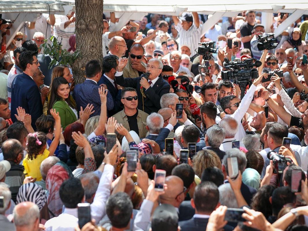 Sorunların farkında olduğunu belirten Kılıçdaroğlu, “Birilerinin ne kadar mağdur edildiğini biliyoruz. Orta Anadolu’nun ne kadar mağdur edildiğini biliyoruz. Çiftçinin alın terinin karşılığını alamadığını biliyoruz. Çiftçinin, elektrik borcu, gübre borcu, bütün girdilerinin çok pahalı olduğunu biliyorum. Çiftçinin ezildiğini biliyorum. Ama bu iktidara, yani bu harami düzenine şunu söylemek lazım; Tarım stratejik bir sektördür. Çiftçi çalışmazsa 85 milyon aç kalır. Bunu Ankara’dakilerinin de duymasını istiyorum. Sizler de oylarınızla duyuracaksınız.” dedi.