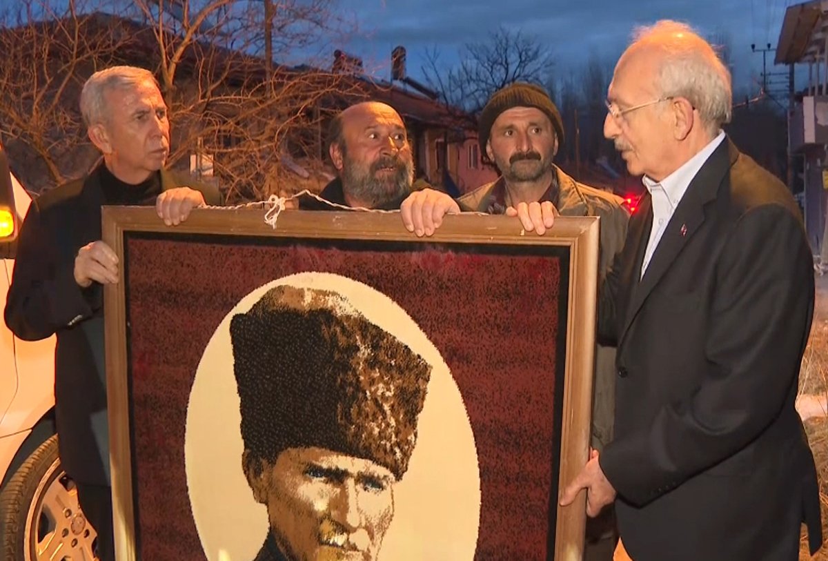 Vatandaşların yoğun sevgi gösterisinde bulunarak sıkıntılarını anlattığı Kılıçdaroğlu'na, bir depremzede babadan kalma Atatürk tablosunu, evleri yıkıldığı için "Asacak yerim kalmadı, saklayacak yerim yok. Babadan kalma bu resmi hatıra olarak size vermek istiyorum" diyerek hediye etti.