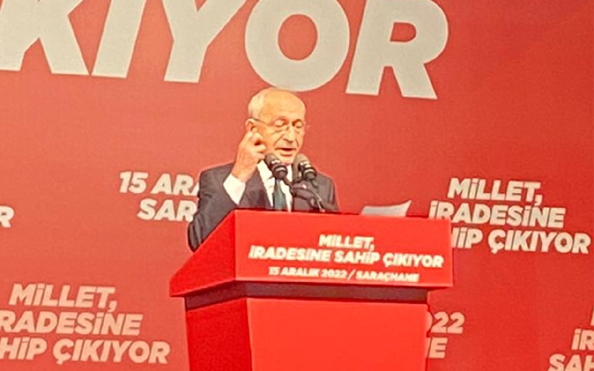 CHP Genel Başkanı Kemal Kılıçdaroğlu, Saraçhane’deki demokrasi buluşmasında konuştu. “İktidar” sloganları ile karşılanan Kılıçdaroğlu “İktidar olacağız hiç merak etmeyin” karşılığını verdi. 11 madde halinde düşüncelerini açıklayacağını söyleyen Kılıçdaroğlu şunları söyledi: