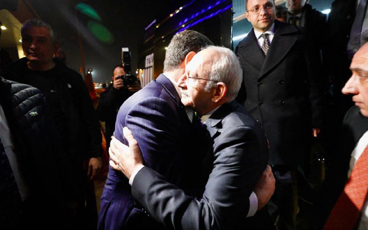 CHP'li belediye başkanları ve yoğun bir kalabalık tarafından karşılanan CHP lideri, İmamoğlu'nun makam odasına geçti.