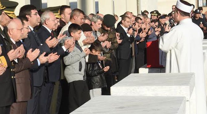 Cumhuriyet Halk Partisi Genel Başkanı Kemal Kılıçdaroğlu, Diyarbakır Silvan'da yaralandıktan sonra tedavi gördüğü hastanede şehit olan Komiser Yardımcısı Özel Harekat Polisi Enis Kırımlı için Ankara Kocatepe Camii'nde düzenlenen cenaze törenine katıldı.