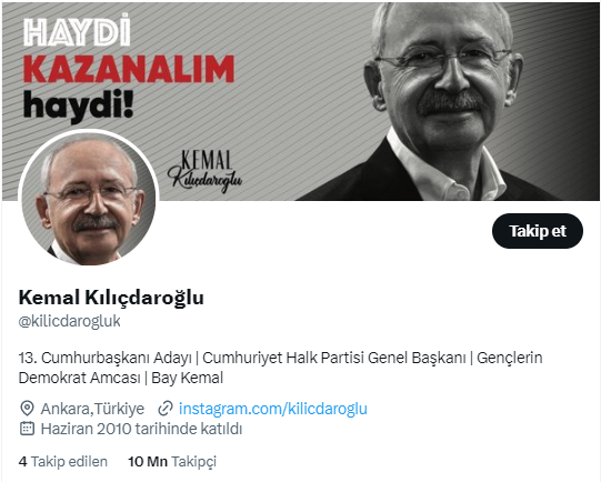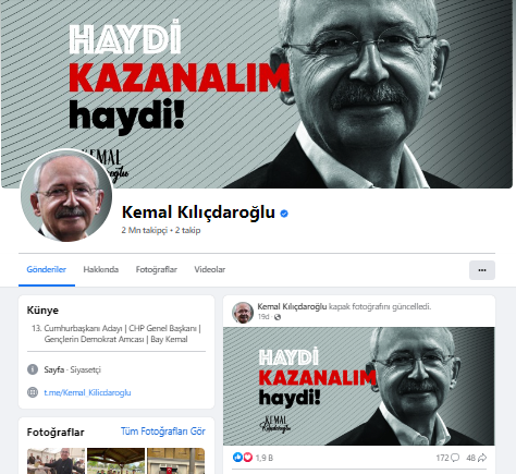 FacebookMillet İttifakı Cumhurbaşkanı Adayı ve CHP Genel Başkanı Kemal Kılıçdaroğlu, sosyal medya hesaplarındaki profil fotoğraflarını değiştirdi.
