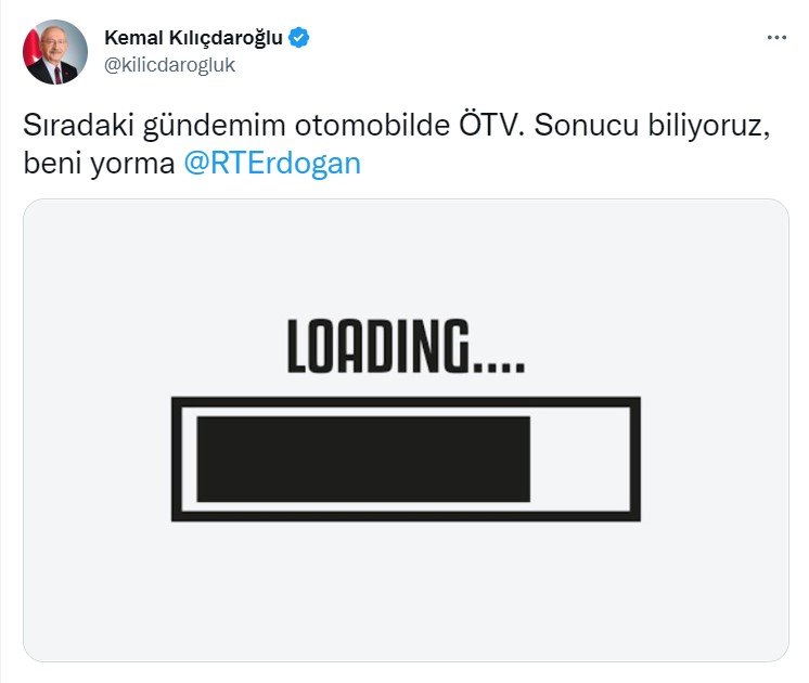 Erdoğan’ın EYT düzenlemesiyle ilgili detayları açıklamasının ardından CHP lideri Kemal Kılıçdaroğlu, sosyal medya hesabından 18 Temmuz’daki ‘EYT… loading’ yazılı paylaşımını alıntılayarak “Hayırlı uğurlu olsun” yorumunda bulundu.