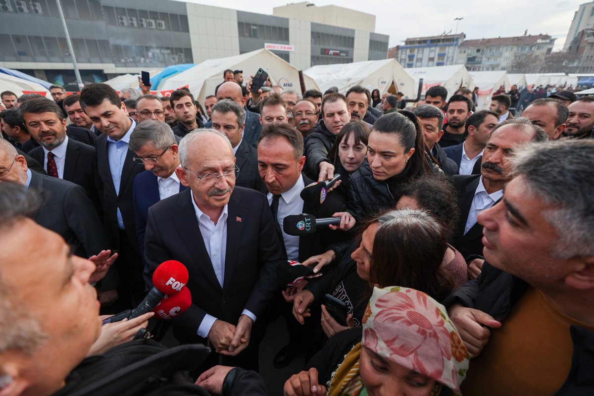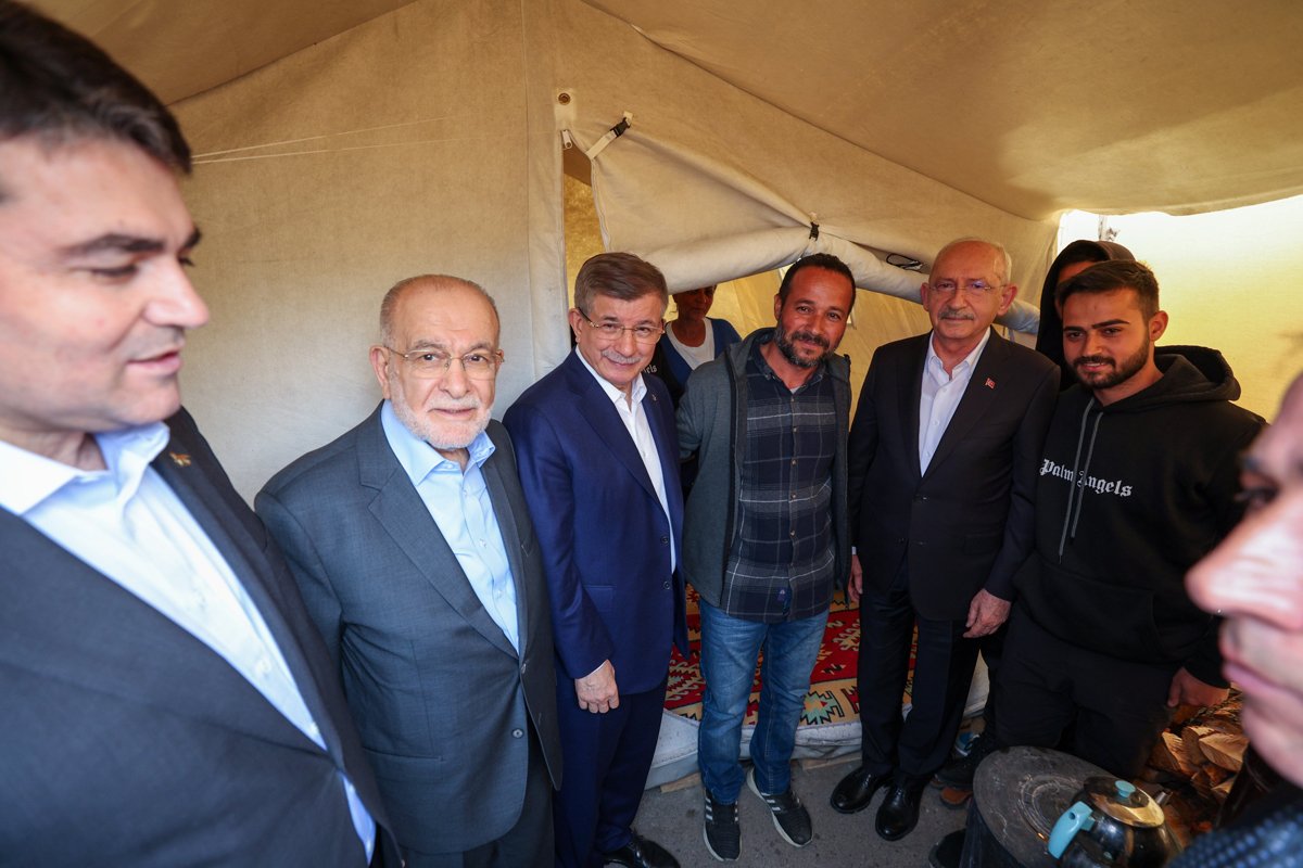 Kemal Kılıçdaroğlu, beraberindeki liderlerle birlikte daha sonra enkaz alanında incelemelerde bulundu. Kılıçdaroğlu, çadır kentte depremzedeler ile bir araya gelerek sohbet etti, sorunlarını dinledi.