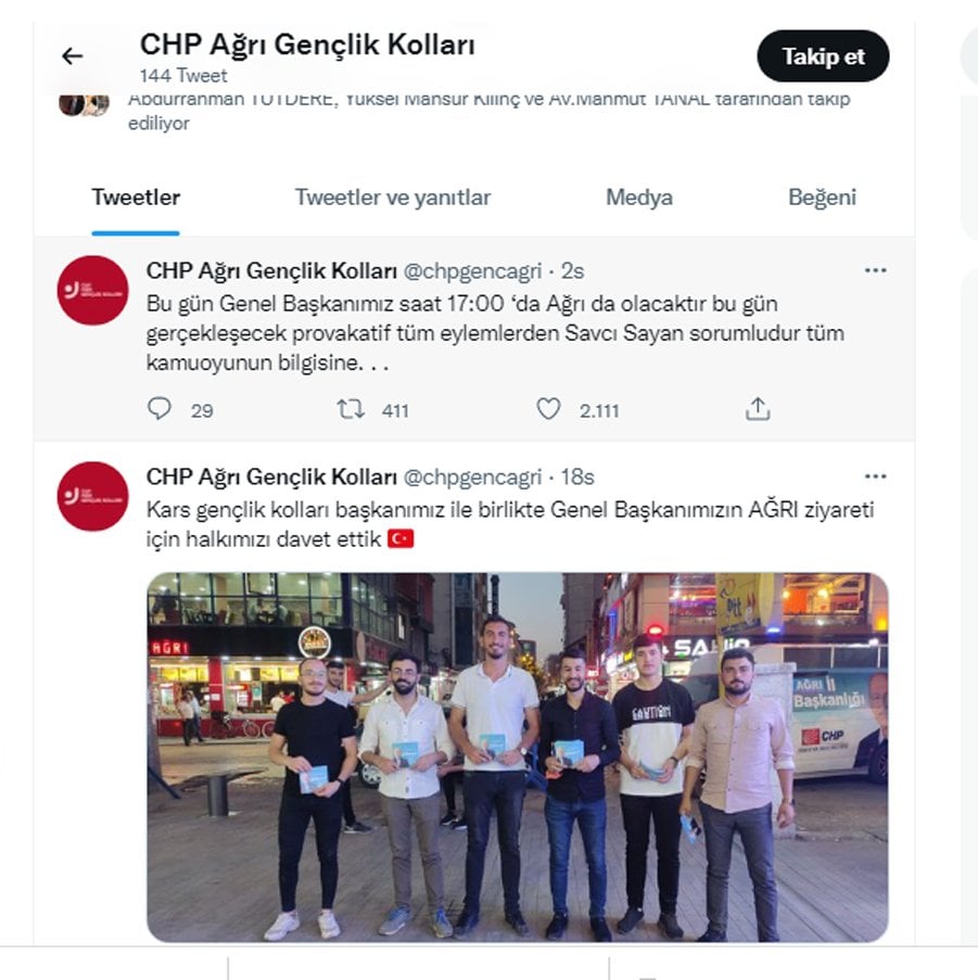 Kılıçdaroğlu'nun Ağrı ziyaretine saatler kala  CHP Ağrı Gençlik Kolları Başkanlığı, 'provokasyon' açıklaması yaptı.