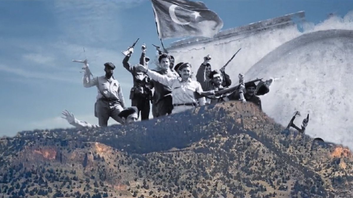 Videoda Kıbrıs'taki Türk mücahitler diye EOKA terör örgütü mensuplarının yer aldığı bir fotoğraf kullanıldı. Söz konusu fotoğrafta, 23 Nisan 1964'te EOKA'lı teröristlerin ele geçirdiği Türk bayrağı görülüyor.