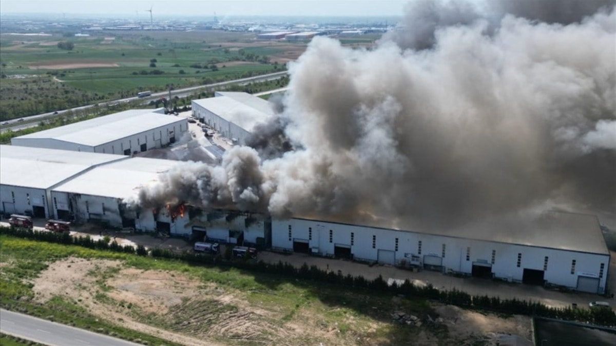 Kilis Organize Sanayi Bölgesi'nde kauçuk üretimi yapan bir fabrikanın bahçesinde henüz belirlenemeyen nedenle yangın çıktı.