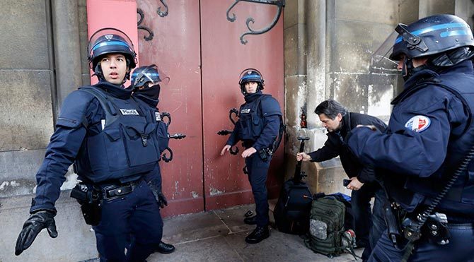 Paris'te sabah başlatılan operasyon kapsamında, Fransız polisi bölgedeki Saint Denis Kilisesi'nin kapısını kırarak içeri girdi.